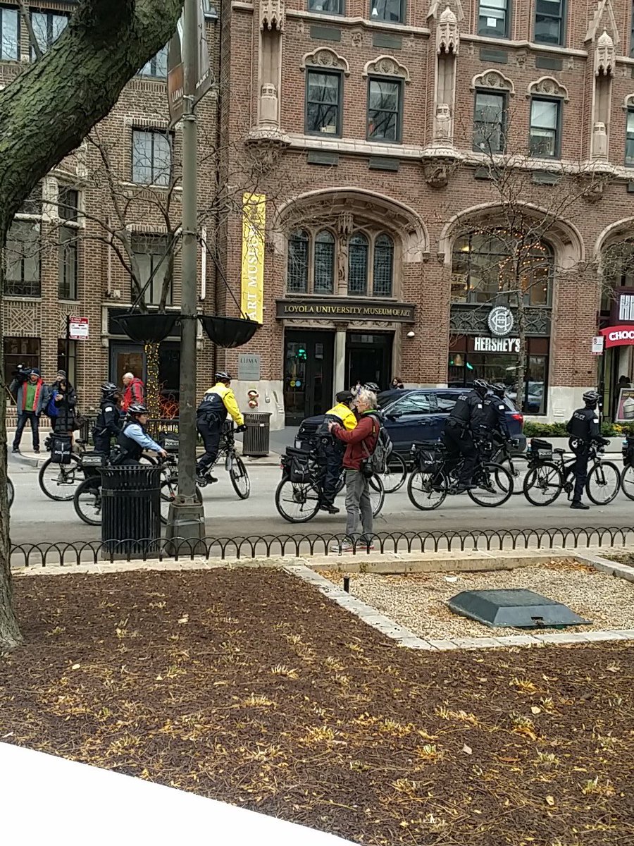 Dozens of @Chicago_Police out to repress the free speech and assembly rights of #CPACBOYCOTT_NOV25 protesters today!pic.twitter.com/b3XGR97Qgp