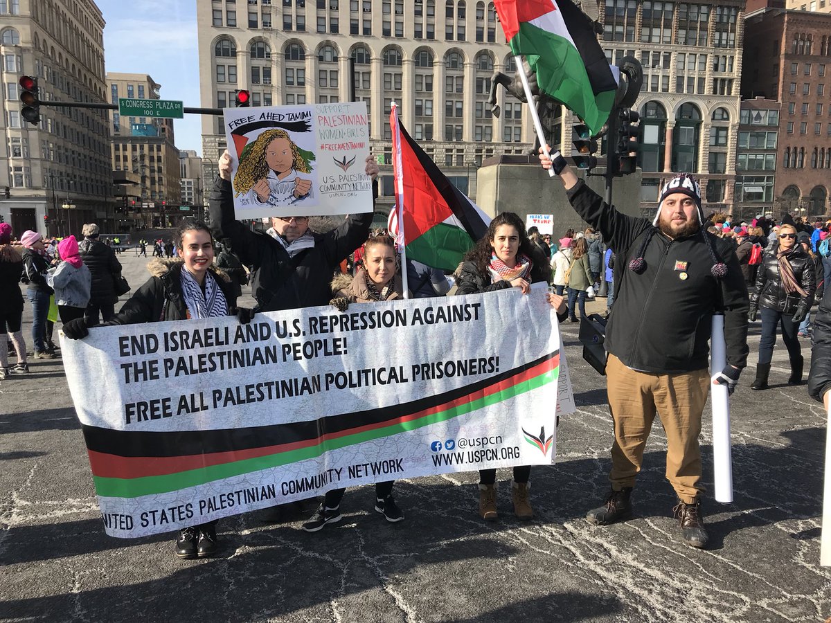 At the #womensmarchchi supporting Palestinian women and girls #FreeAhedTamimipic.twitter.com/sV8s3HYsRT