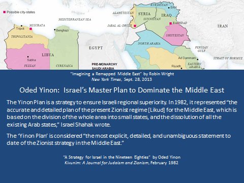 It's a two-pronged strategy. First use the "Chemical Weapons" as a pretext for intervention and further destabilization, as well as a distraction from Israel's International Law violations. All of this in accordance to the Oded Yinon Plan for "Greater Israel."pic.twitter.com/39Di49rrhn