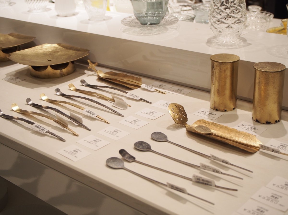 展示風景 ・参加作家:井倉幸太郎(磁) 岡崎慧佑(陶) 片瀬和宏(陶) 小林千恵(陶磁) フクオカタカヤ(磁)glass atelier えむに(硝) 小西光裕(金属) 三輪周太郎(金属) 村上慶子sabi-nuno(錆染) 皆さまのご来店お待ちしております。pic.twitter.com/lZZBhiQvW9