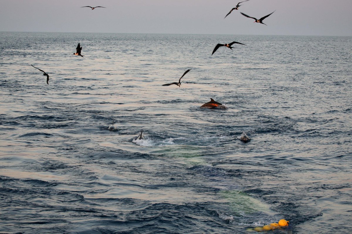 Dolphins follow WA fishing trawlers for food.