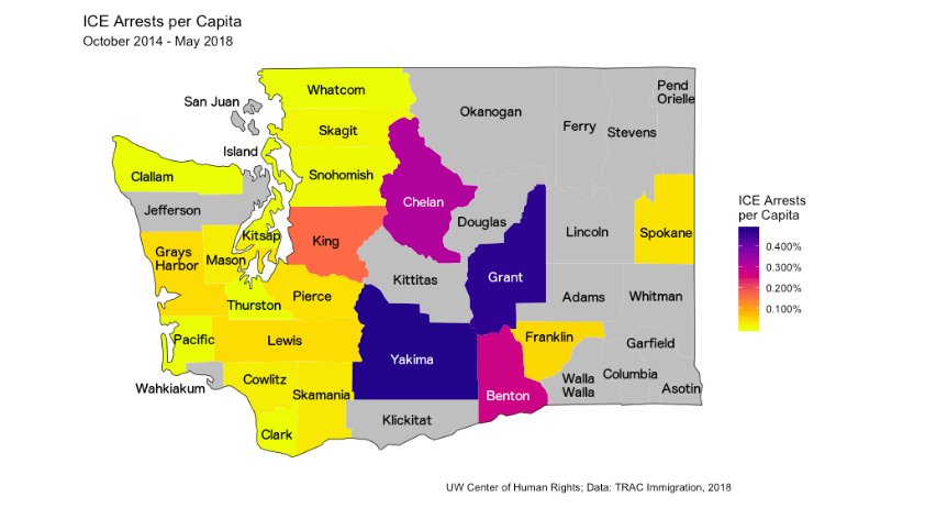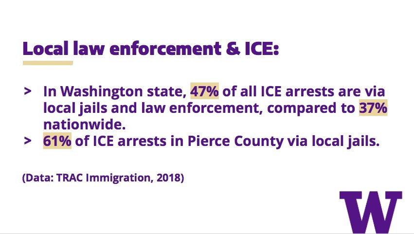 Understanding how local law enforcement agencies interact with ICE is important. In WA, almost half of all ICE arrests come via local jails. In Pierce Co., 61% of ICE arrests are via the jail, according to ICE data analyzed by @TRACReports. More info here: https://jsis.washington.edu/humanrights/2018/11/27/trac-ice-data-wa-state/ …pic.twitter.com/Mz6F1KnZaf
