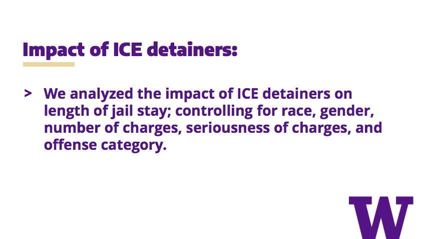 We found that the presence of an ICE detainer on a defendant's booking sheet was associated with jail stays 3.7 times longer, than similar defendants without an ICE detainer, when controlling for race, gender, and the nature of the charges against them.pic.twitter.com/BAM8LvMsKf