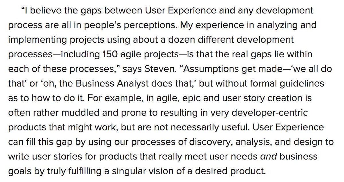 More (variously aged) stuff I have written on process, narrow and broad, on the off chance anyone cares: https://medium.com/the-agile-weekly/more-agile-more-problems-a5169c0a8b28#.sscife9jy … https://medium.com/@shoobe01/what-i-do-a-plea-for-human-factors-and-usability-7b445f9578f8#.t2i3g3h3t … https://medium.com/@shoobe01/we-are-not-masters-of-our-design-destinies-41c7f5057701 … https://www.uxmatters.com/mt/archives/2017/11/design-craft-and-manufacturing-for-digital-products.php … https://www.uxmatters.com/mt/archives/2014/05/the-role-of-user-experience-in-the-product-development-process.php …https://medium.com/@shoobe01/when-your-project-is-done-it-s-not-dead-871bd8bb518c#.riwt07j1d …