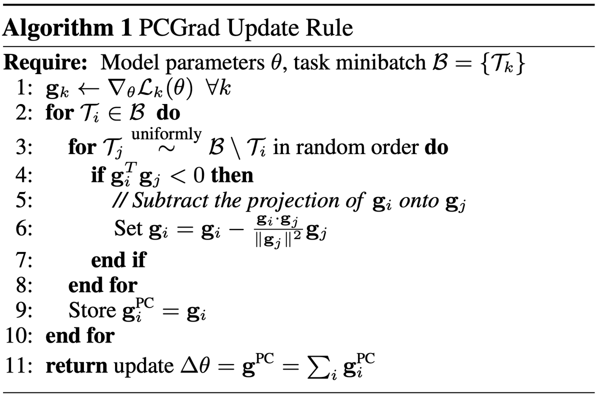 Excited to share PCGrad, a super simple & effective method for multi-task learning & multi-task RL: project conflicting gradients On Meta-World MT50, PCGrad can solve *2x* more tasks than prior methods https://arxiv.org/abs/2001.06782 w/ Tianhe Yu, S Kumar, Gupta,