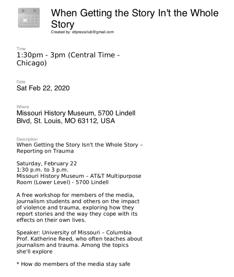 @mohistorymuseum Free to media members, journalism students & others on the impact of violence & trauma, exploring how they report stories & how to cope w/ its effects on their own livespic.twitter.com/GJ6o5JbVbO