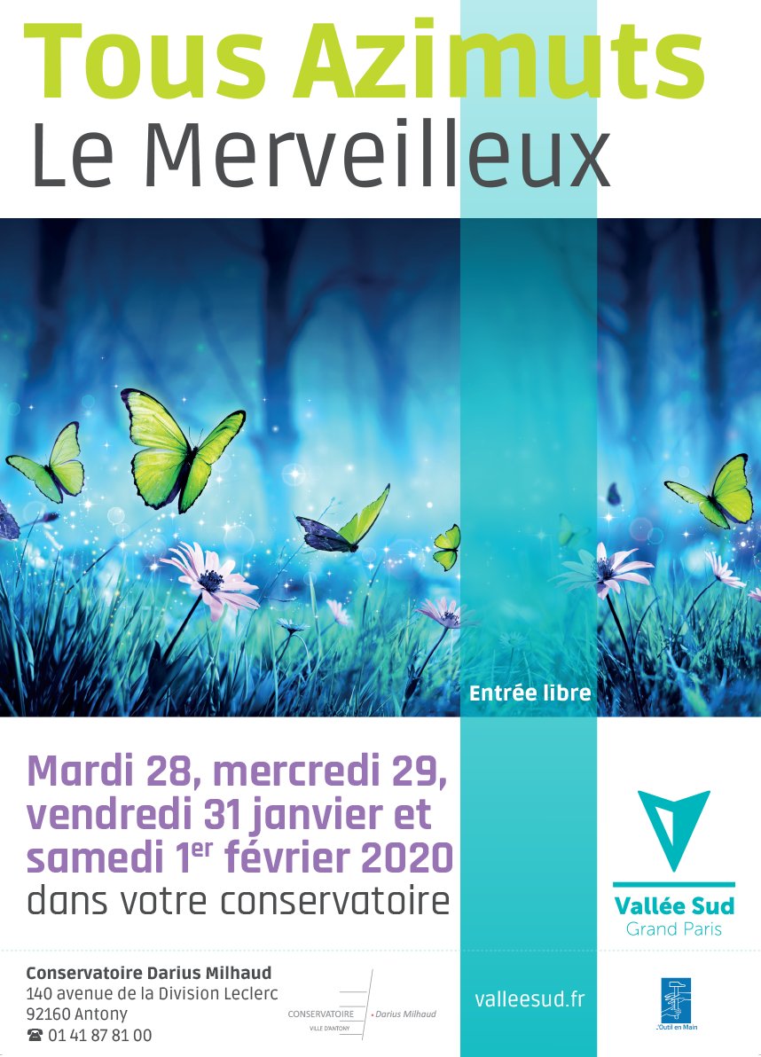 #Découverte] Tous azimuts : le Merveilleux ! À partir du 28 janvier et ce, jusqu’au 1er février prochain, le#conservatoire Darius Milhaud à#Antony vous propose d’assister à une série de spectacles autour du fantastique et de la féérie. + d’infos via