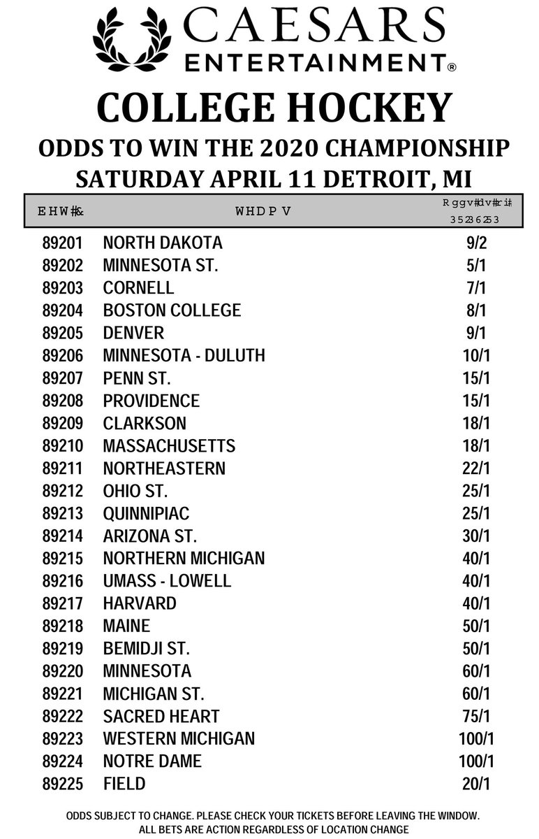#FrozenFour. College hockey title from @CaesarsEnt sports books. http://gamingtoday.com pic.twitter.com/ksy5Morv1S