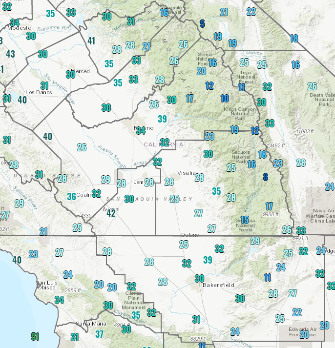 Another cold morning today in the San Joaquin Valley with some observed temperatures as low as the mid to upper 20s in some areas.
