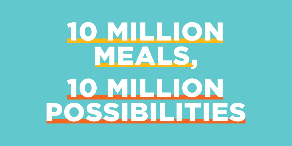#10millionpossibilities, to kids and teens in need. When you donate just $1 you can help feed a child in your community and beyond up to 10 meals.