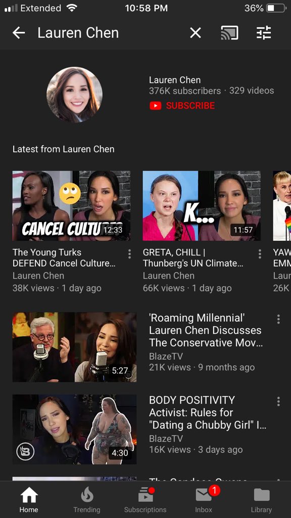 On the mobile app. Channel is up at the top and a row of videos i can scroll all videos from Lauren’s channel. Of course I’m also signed into my YT account which I am near 100% certain causes different results.pic.twitter.com/v1LUhRF6hx