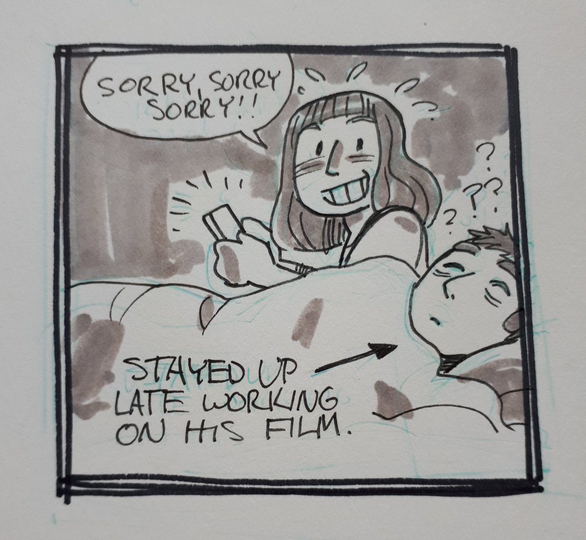 Hourly Comic Day begins! I started my Saturday by waking Tim up much too early.