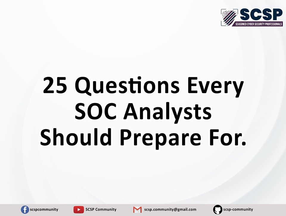Are you a SOC Analyst? Or are you looking forward to start your career in this field? Here are a few questions every SOC Analyst should know!!