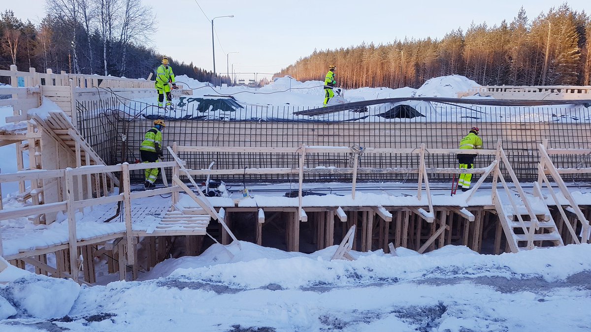 Vt 4 Viantienjoki-Maksniemi hankkeella Simossa siltatyöt etenevät Nenäntien sillalla. Pikkupakkaset (-20C) eivät raudottajia haittaa.