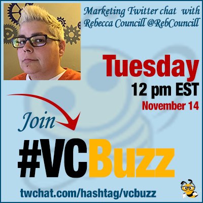 @RyanBiddulph @irishtara @PamDidner @seekristintweet @donna_tribe @kerrygorgone @MrsPaznanski @tommyismyname @OranaCreative Join us in 50 mins to chat Social Media Peers with @RebCouncill http://vcb.bz/2g3k #vcbuzzpic.twitter.com/e5eysAG16y