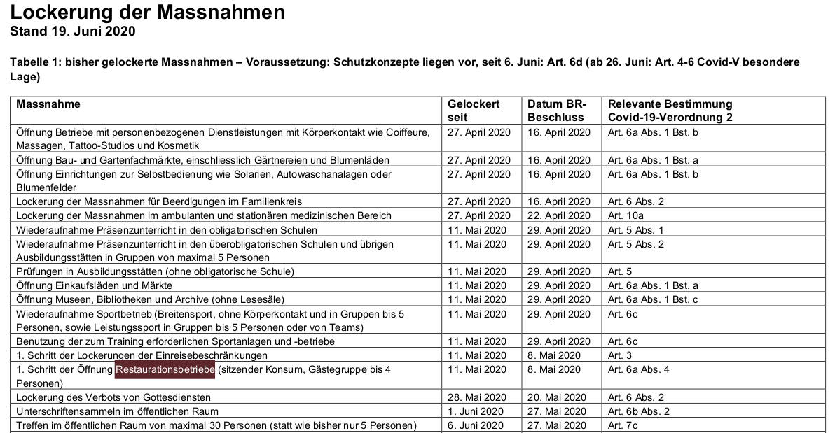 Irgendwie in Kontrast dazu (entgegen den BAG-Risikoeinschätzungen) stehen die Bundesratsbeschlüsse zu den Lockerungen: Dokument «Lockerung der Massnahmen und mögliche nächste Schritte» vom 19.6. https://www.bag.admin.ch/bag/de/home/krankheiten/ausbrueche-epidemien-pandemien/aktuelle-ausbrueche-epidemien/novel-cov.html?fbclid=IwAR07vCoPcZrzevBmgDuOikCPMaUmZ8Mr7FqW339L_9mKX_XBOo6aMyZ20wc …pic.twitter.com/KXFF9Vxnwc