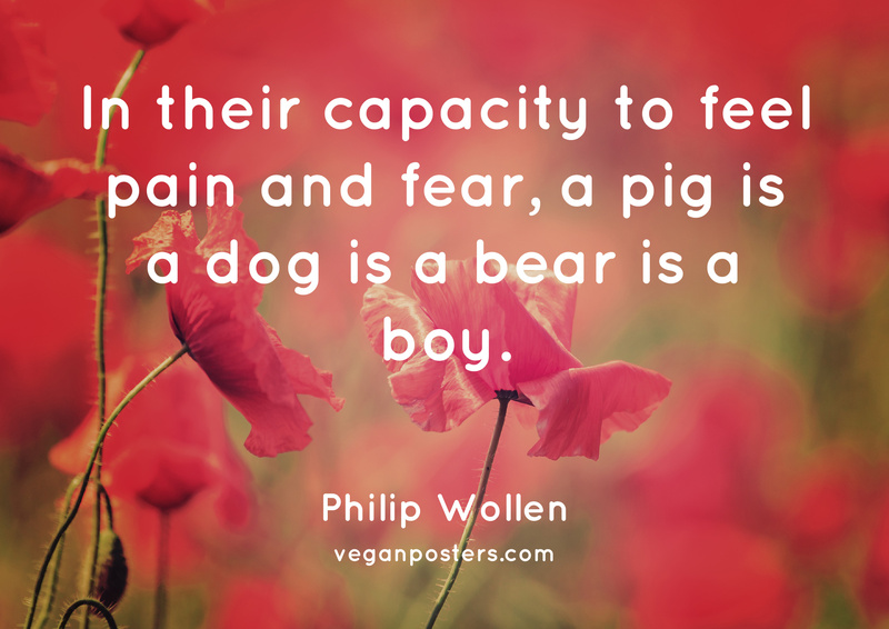 In their capacity to feel pain and fear, a pig is a dog is a bear is a boy. - Philip Wollen