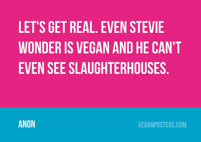 Let's get real. Even Stevie Wonder is vegan and he can't even see slaughterhouses. - Anon