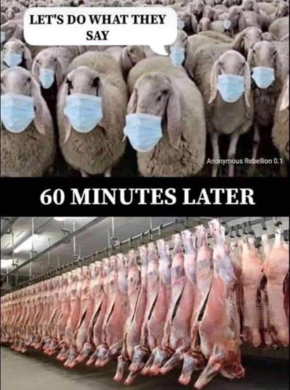 Wel apart bovenste foto zijn het schapen en als ze geslacht zijn . Dan zijn het ineens Runderen. Kan je zien wat zo.n mondkapje teweeg brengt.
