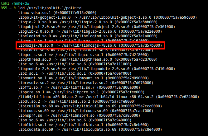#PolicyKit (#PolKit – sudo "replacement, and then some) daemon is pulling in a the Mozilla JavaScript engine? a central component… that manages privileged access to the system… runs JavaScript? Yeah, I had that look on my face, too…pic.twitter.com/z4re5QXLeb