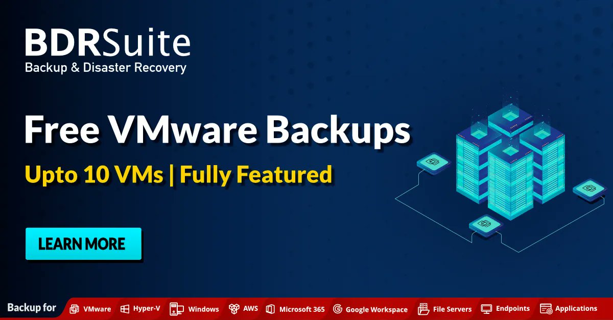 #BDRSuite#Backup for#VMware with all standard edition features upto 10 VMs. Protect your business-critical data from data loss at zero cost. Click to learn more https://buff.ly/2vrlSO7#VMbackup#VMwarebackuppic.twitter.com/qE8spRUiRA