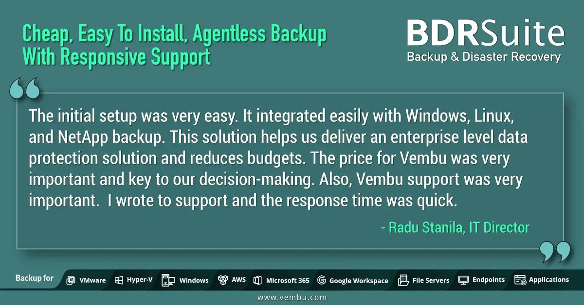 #backup and DR needs. Try VMware & Hyper-V backup at an affordable price with#BDRSuite. Low Cost | Feature Rich | Centralized Management & much more. https://buff.ly/2Iklpys#customersuccess#successstoriespic.twitter.com/Arf0cNmlGN