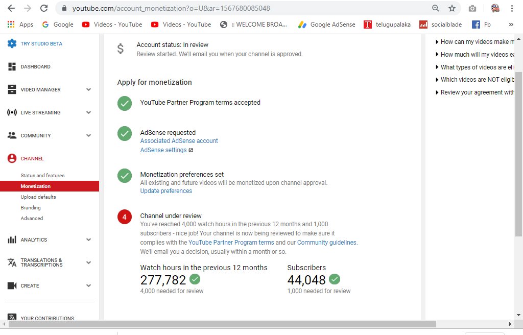@TeamYouTube Hi Youtube Team, I Have been Under review for Monetaization Since 4 Months. I am well over the Required watchtime and Subscribers count. Please letme know if evreything is ok or who I can get in touch with to move my application Forward.pic.twitter.com/lgxibOvF1d