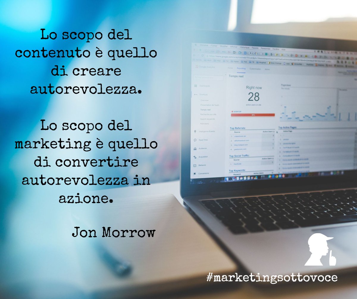 Lo scopo del contenuto è quello di creare autorevolezza. Lo scopo del marketing è quello di convertire autorevolezza in azione.