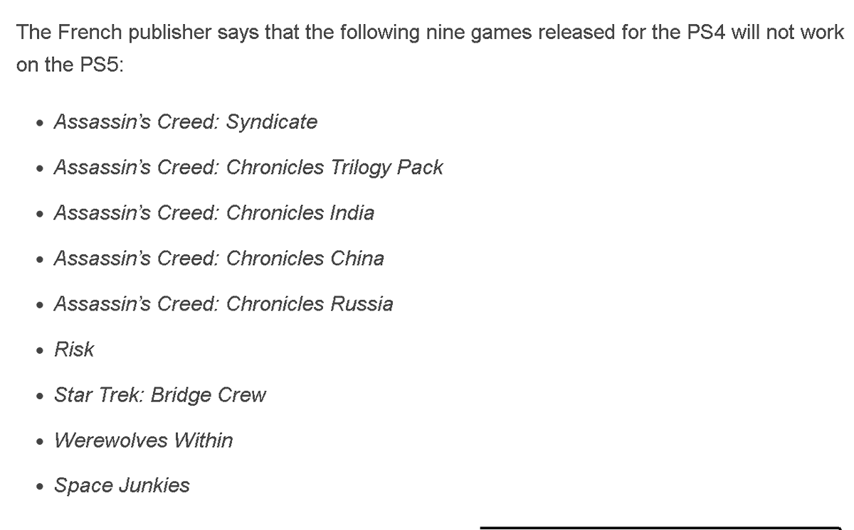 That's silly. Syndicate won't work on ps5??That's like the last game they made that has proper stealth.