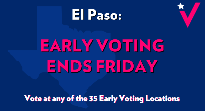 El Paso, avoid the snow tomorrow and cast your ballot today at lunch or on your way home! Only 5 days left to vote early in Texas! 35 voting locations: https://epcountyvotes.com/quick_links/early_voting …pic.twitter.com/4VhEDCyFou