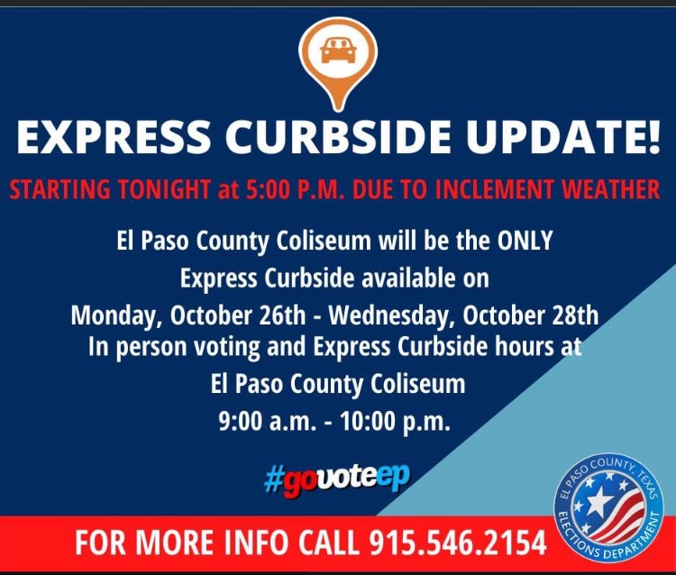 El Paso: we are in a state of emergency. PLEASE make sacrifices to keep others + ourselves safe. Keep curfew, follow rules, do not gather, get tested. This last week of early voting, you can safely vote curbside. Stay connected with the latest info at http://epcountyvotes.com pic.twitter.com/2U4LKrPSy0