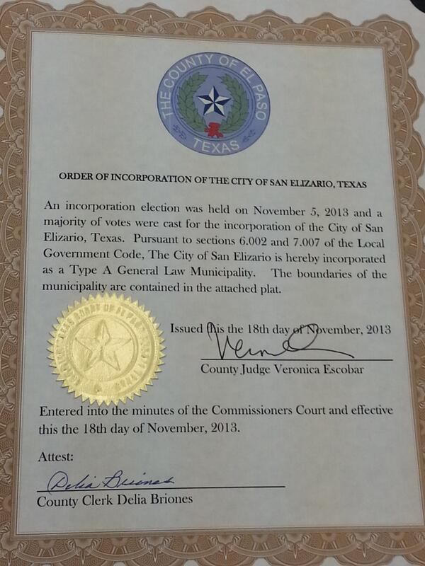 I just signed the Order declaring San Elizario a city!pic.twitter.com/k254IY41Cn
