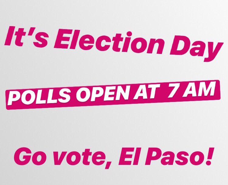 Today’s the day!! Polls open at 7 am and close at 7 pm. Visit http://epcountyvotes.com to find your polling place and call our campaign if you have any questions: 760-0192. Let’s go make history!pic.twitter.com/GfJknQ4xUu