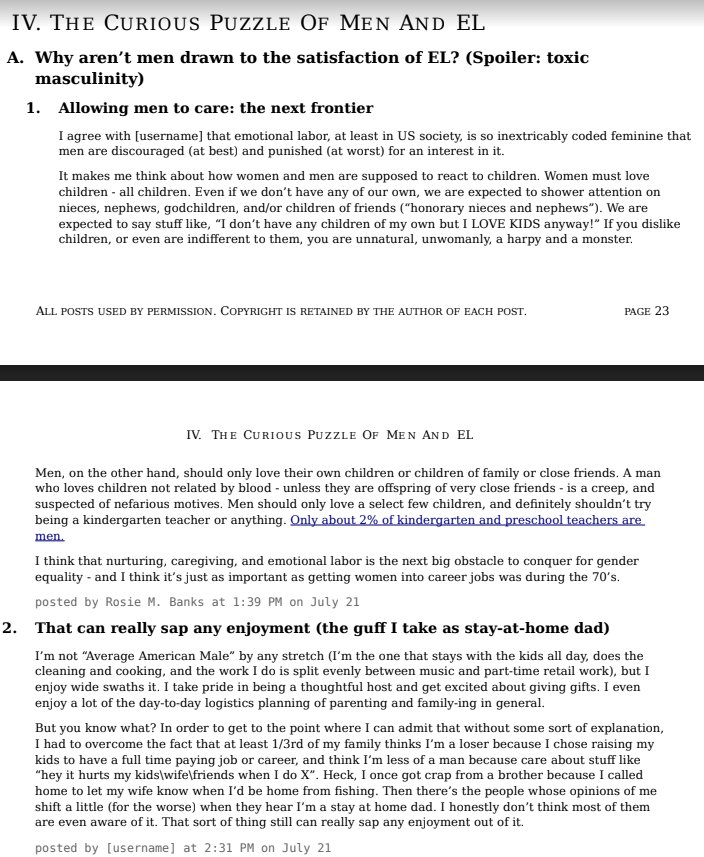 So is men being expected to show no vulnerability considered emotional labor? Or is it theorized on the entitlement side making this a primarily female cause? 🤔