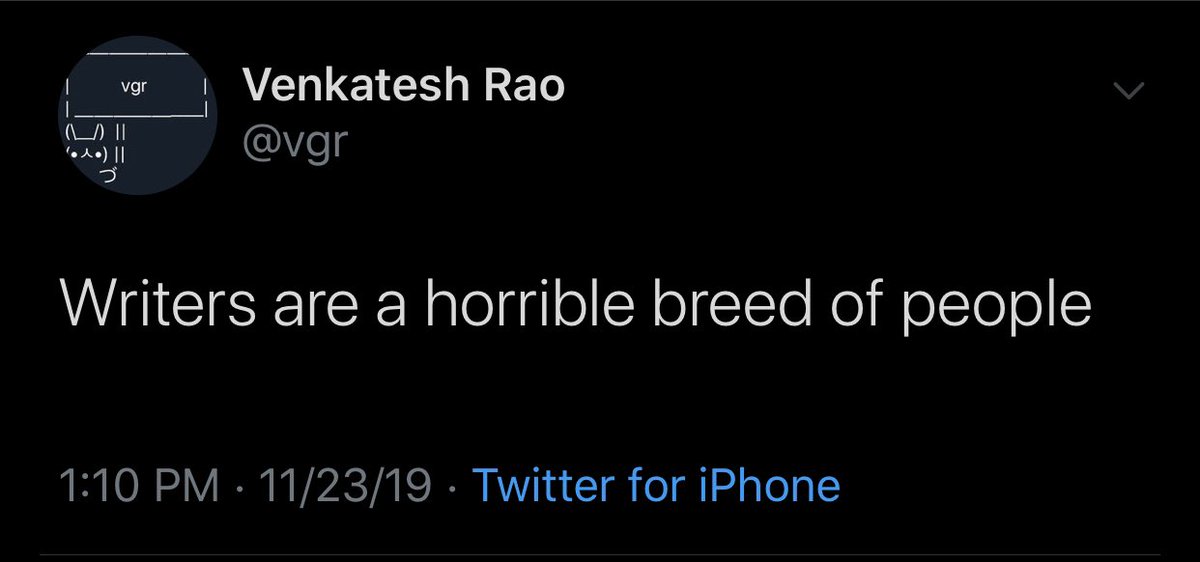 In the last year I think I stopped thinking of myself as a writer (always a very uncomfortable fit for me... it’s always been mostly an instrumental behavior for thinking and self-entertainment for me). I think I sometimes write well, but am not primarily a Writer.