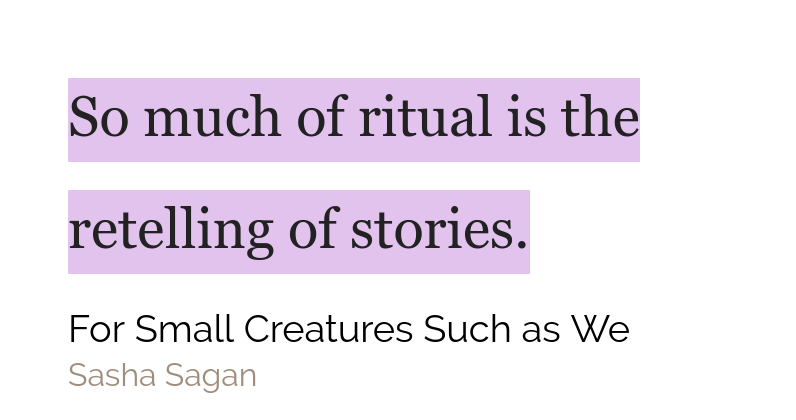 "Of all the turning points in a life, death begs most for ritual." A great one would provide tools to freely express, connect in, and talk about grief.
