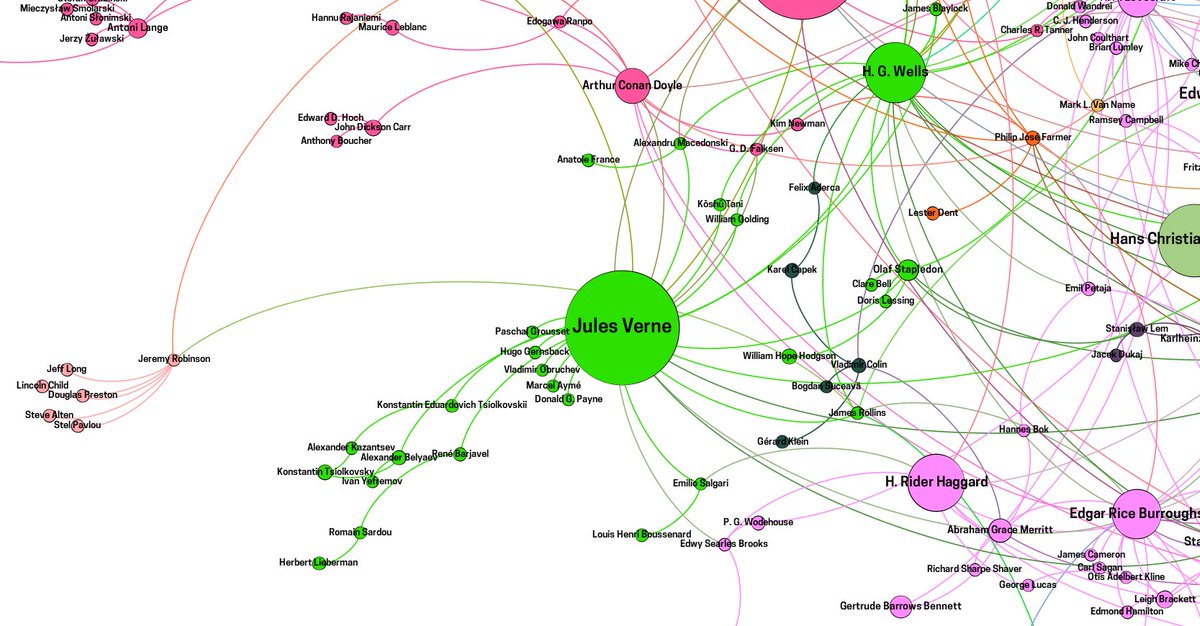 Venkatesh Rao@vgr😀Quote Tweetexns@euxenus·Mar 7, 2020@vgr suggested I try making a graph of scifi author influences. I scraped some data from Wikidata and DBPedia and got this High res: https://easyzoom.com/imageaccess/7d3ebcd219014742b50988afbc5ec92c…Show this thread1:04 AM · Mar 7, 20204 Likes