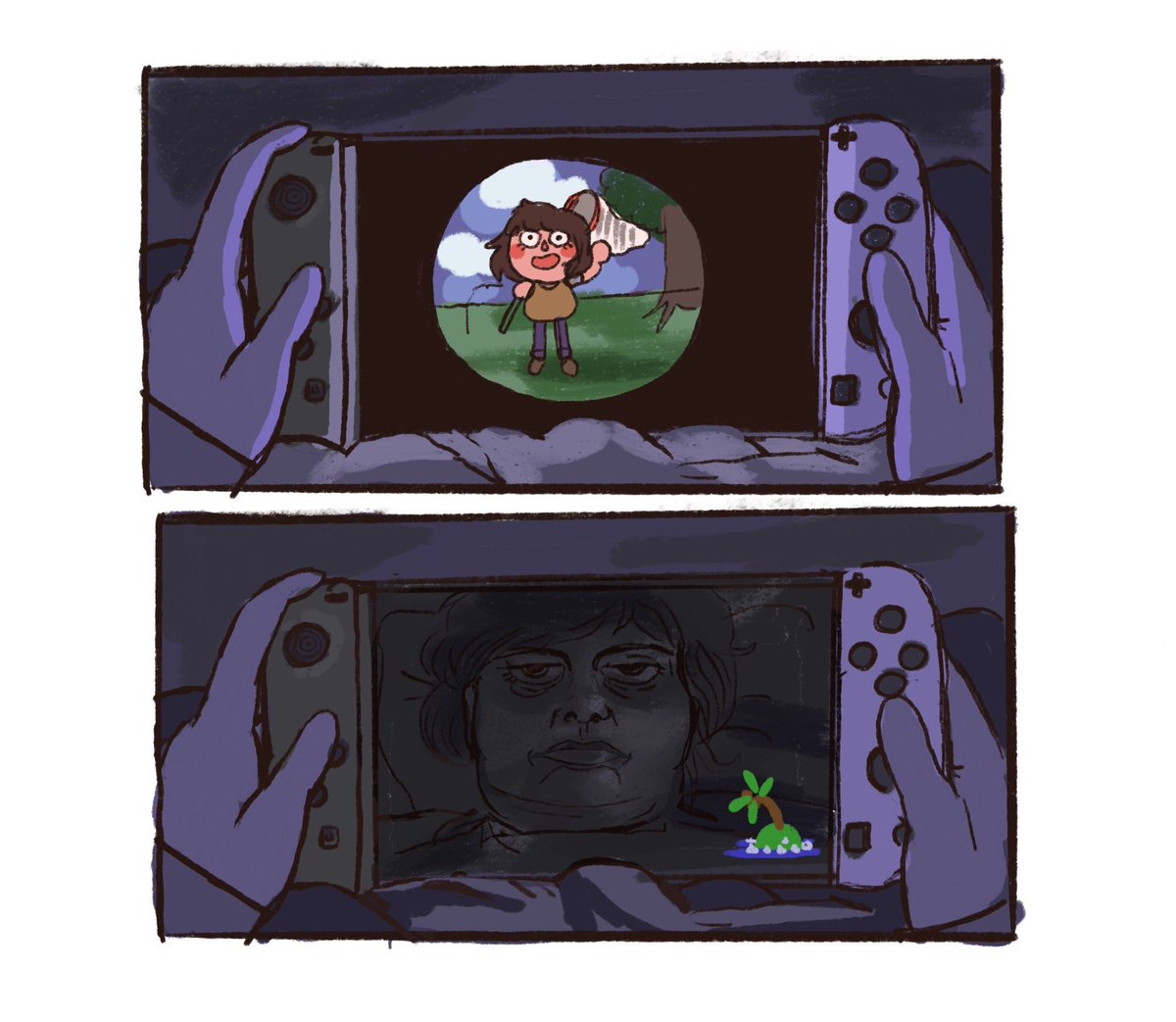 I keep running into these absolutely cursed fucking comics and reminded of what @tobyshorin was saying about the increasing disparity between gray, controlled real world and colourful, intellectual property’d virtual