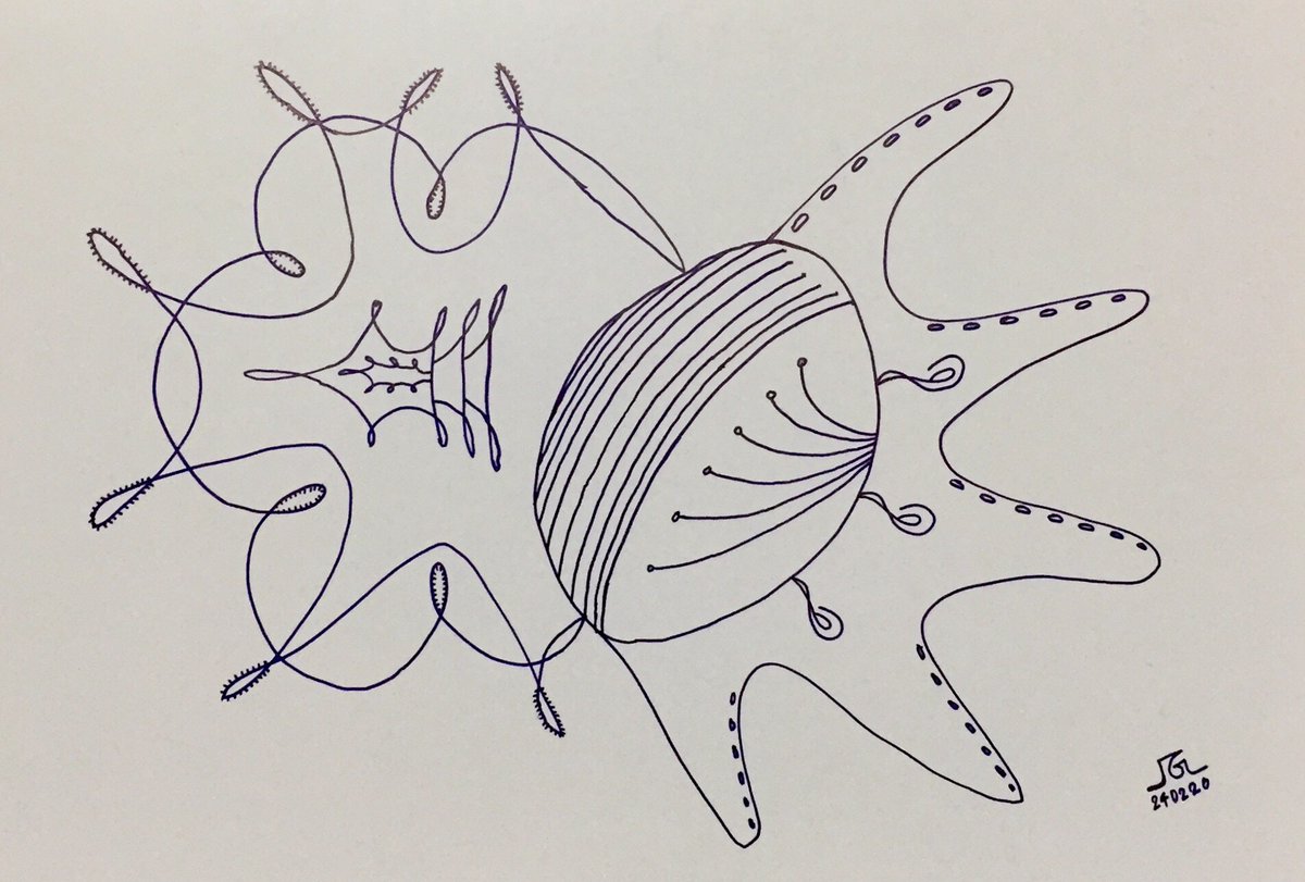 Discovered a pen set gift that had not been used for a long time. Tried a single non-retraced line of the classic idea lightbulb and then this emerged 4/7