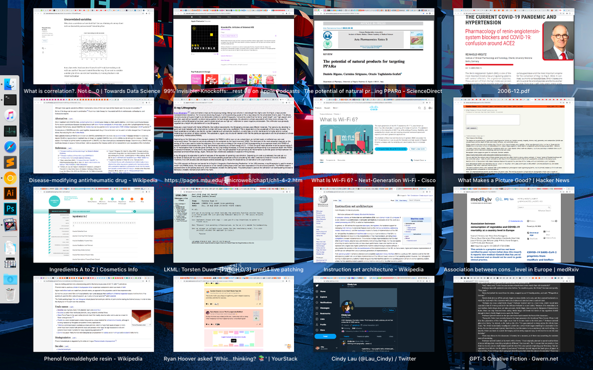 Iโd be interested in seeing a suitably edited list of tabs/links. I canโt even imagine this kind of input overload computing environment.