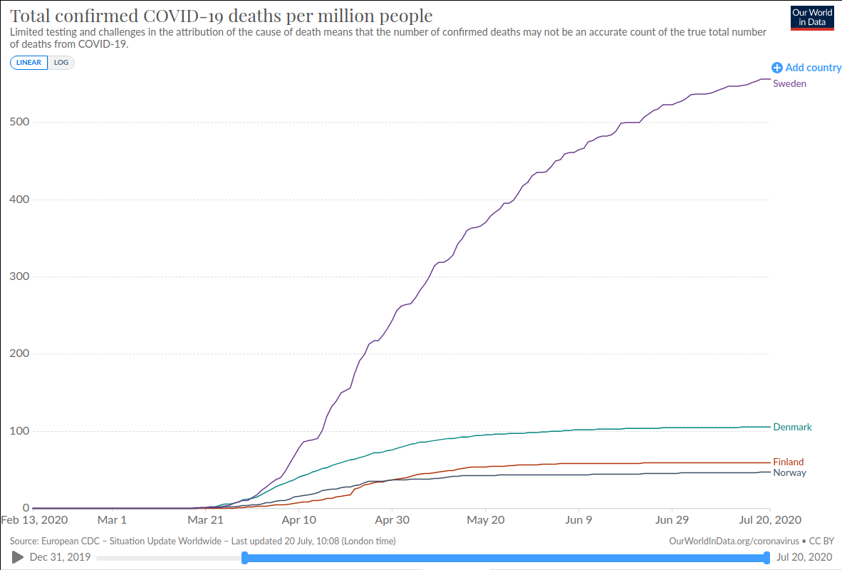 (Some non-Nordic countries have done worse than Sweden due to other factors: more comorbidities, higher population density, no univ. healthcare, etc)