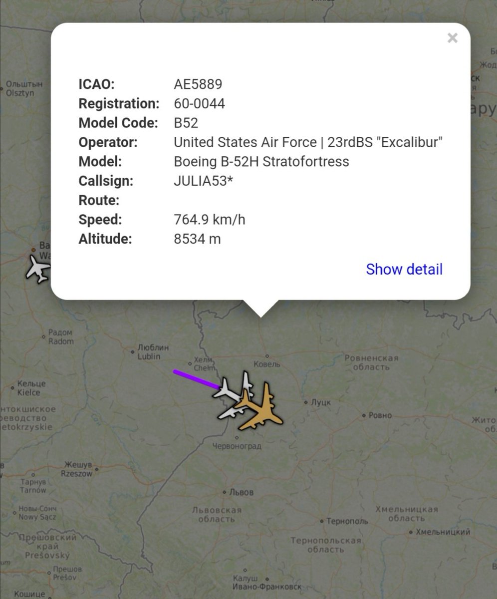 Venkatesh Rao@vgr🤔Quote TweetStatus-6@Archer83Able·Sep 4, 20202x #USAF Boeing B-52H Stratofortress entering the territory of Ukraine from Poland. JULIA51/61-0034 JULIA53/60-0044Show this thread9:15 PM · Sep 7, 20201 Retweet3 Likes