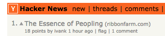 Fun to see @vgr's @ribbonfarm at the top of @newsycombinator this morning -- well deserved!pic.twitter.com/wGFNL80gaj