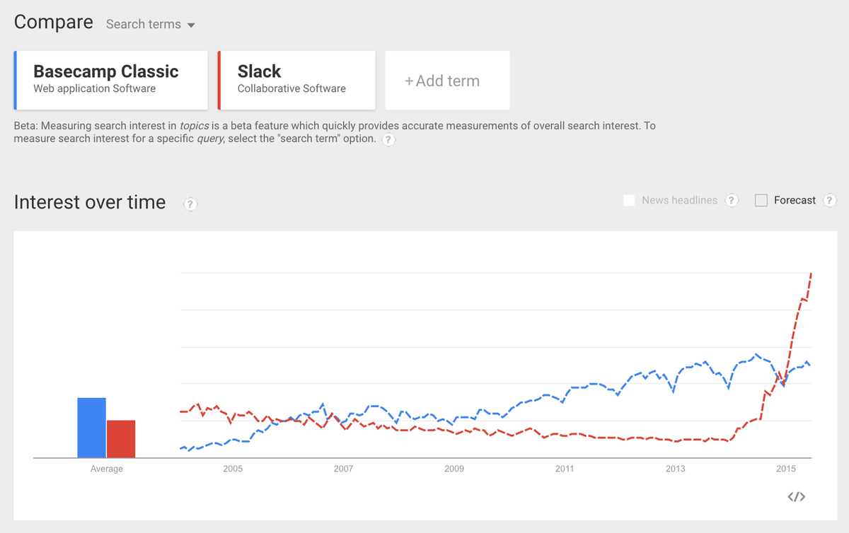 Basecamp vs. Slack. Free vs. Paid is tricky. https://www.google.com/trends/explore#q=%2Fm%2F0d04n6%2C%20%2Fm%2F0zdp3l0&cmpt=q&tz=Etc%2FGMT%2B4 …pic.twitter.com/ZoRGxYtmLH
