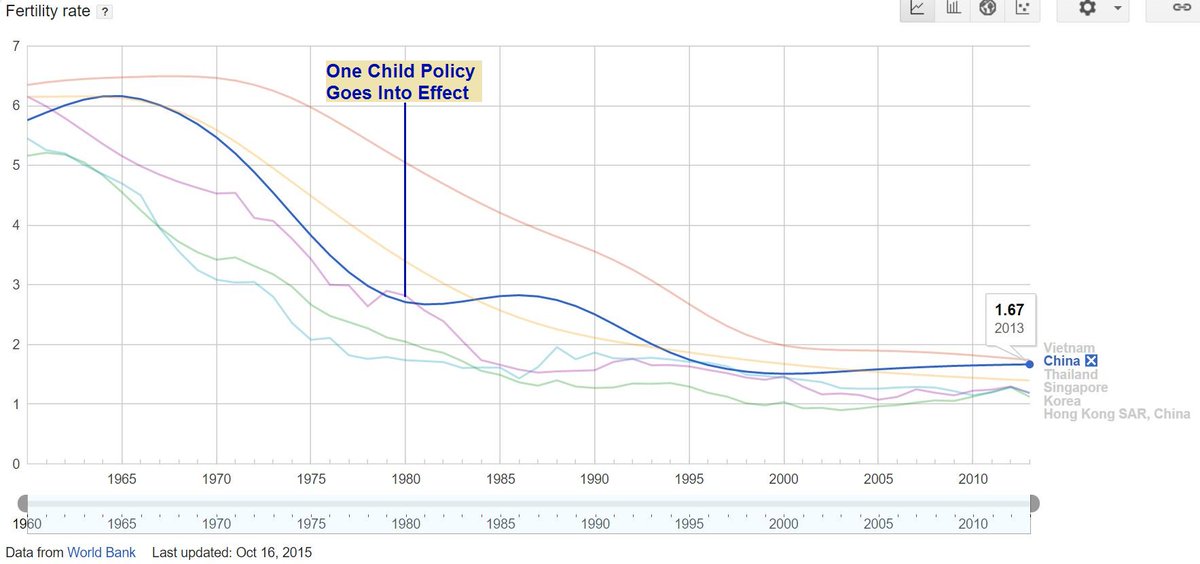 Other Asian countries' birth rates dropped as fast as China's, without the coercion. http://rameznaam.com/2015/10/30/did-the-one-child-policy-matter-probably-not/ …pic.twitter.com/ihIvIsnCel