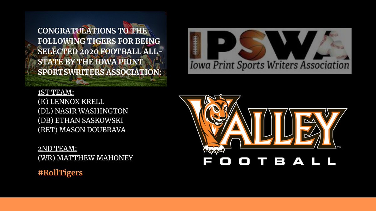 Congratulations to the following Valley Football players who have been named Honorable Mention All District for the CIML Conference. Jayden Williams-Running Back, Cael Nesheim-Wide Receiver, Braeden Edwards-Offensive Line, Trey Krause-Defensive Back, Jack Yencer-Linebacker.