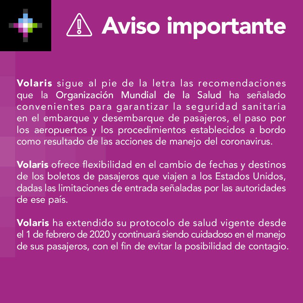 #VolarisInforma su postura en relación con el tema de manejo del coronavirus.pic.twitter.com/quIKixOmVV