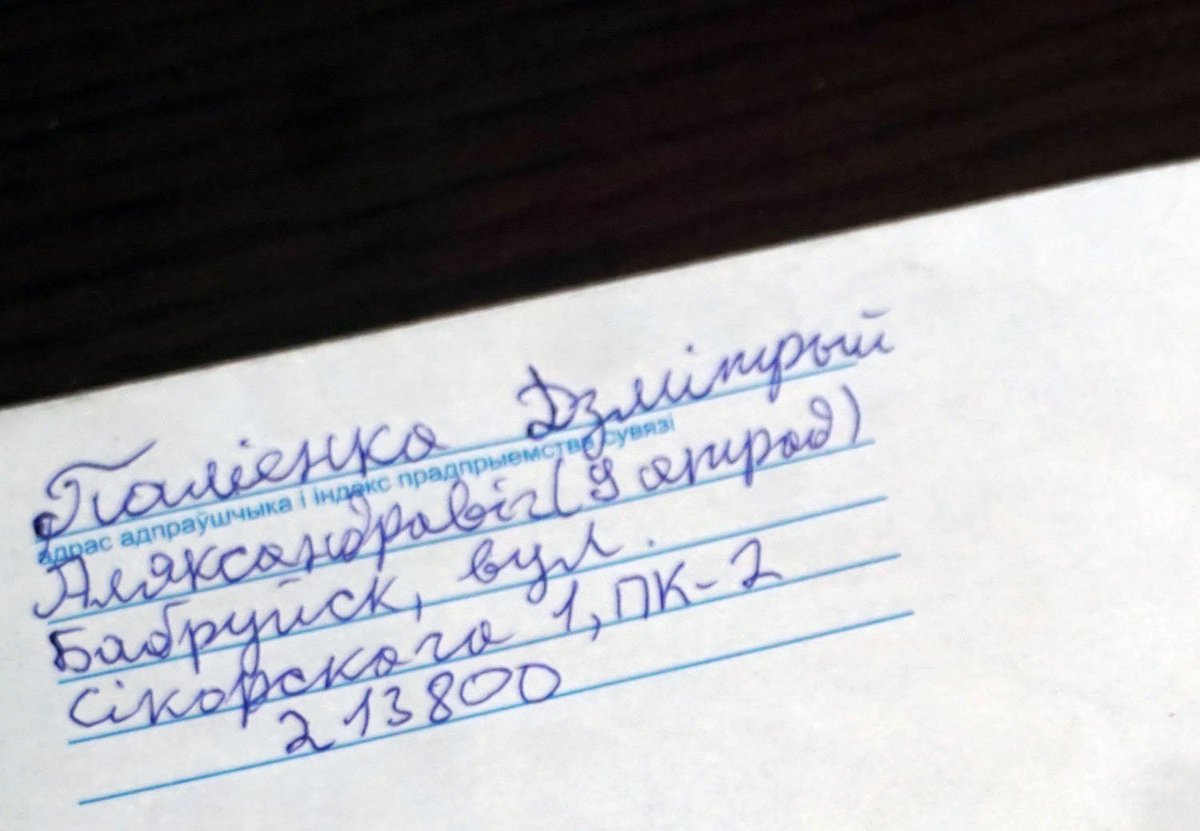 Адказ палітвязьня Змітра Паліенкі са словамі ўзаемнай падтрымкі! ✉ «Бо разам мы і мы пераможам!», — піша вязень. ✊😎 Падтрымайце і вы несправядліва асуджаных добрым словам, бо для іх гэта вельмі важна! Адрасы можна даведацца тут: http://bit.ly/1vkIX8b  #Viasnapic.twitter.com/xKUo93WmqJ