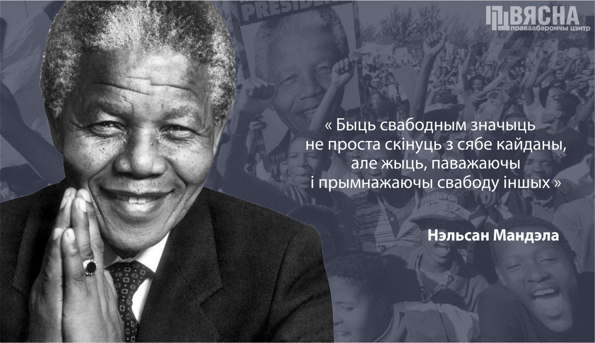 18 ліпеня — Міжнародны дзень Нэльсана Мандэлы, аднаго з самых вядомых барацьбітоў за правы чалавека ў перыяд апартэіду, за што 27 гадоў адбыў у турме(!)