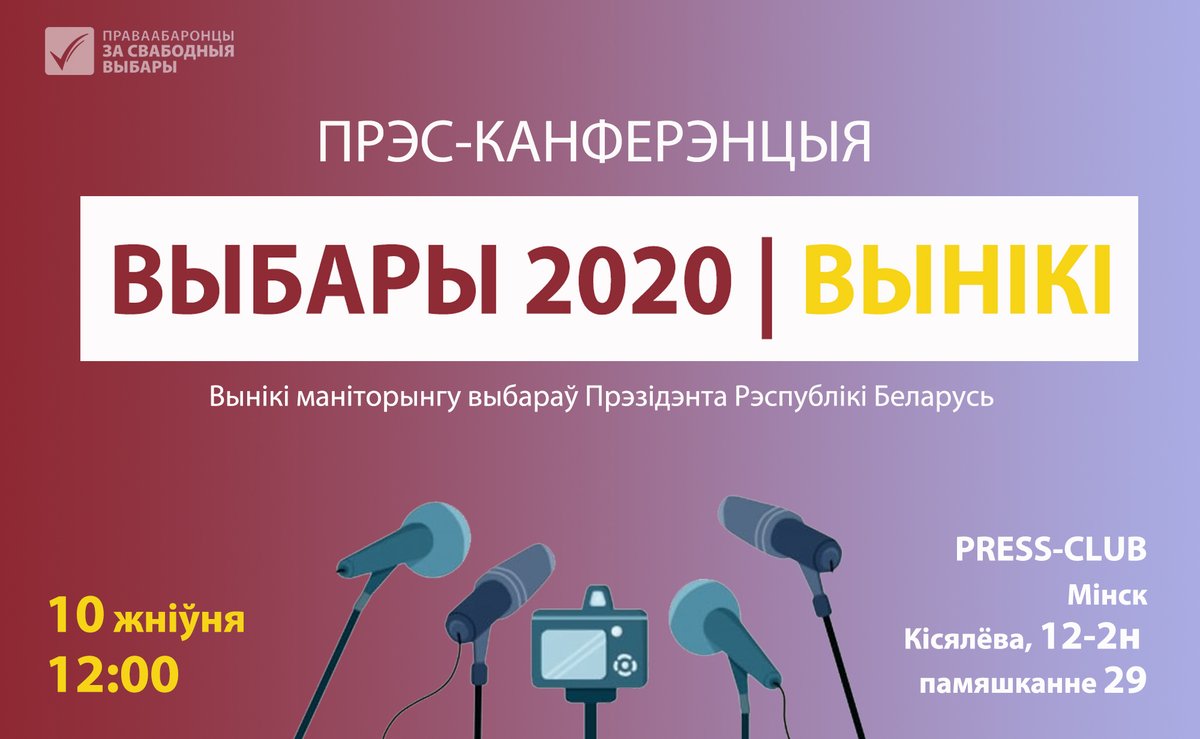 Запрашаем на прэс-канферэнцыю па выніках маніторынгу выбараў Прэзідэнта Рэспублікі Беларусь ад грамадскай кампаніі незалежнага назірання «Праваабаронцы за свабодныя выбары»